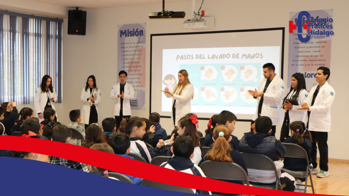Durante la sesión, los futuros médicos explicaron de manera dinámica y cercana cuáles son las medidas esenciales para evitar la contaminación de alimentos, la correcta manipulación en casa y en la escuela, y los pasos adecuados para realizar un lavado de manos efectivo.